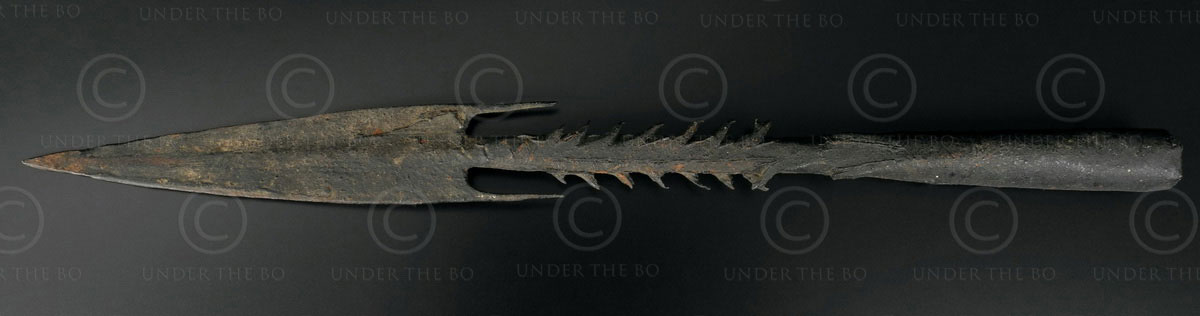 African spearhead AF185. Unknown exact origin, Africa. underthebo November 26, 2016 African spearhead AF185. Spearhead in wrought iron with a serrated blade. Unknown exact origin, Africa. 19th century. 29.5 cm long.