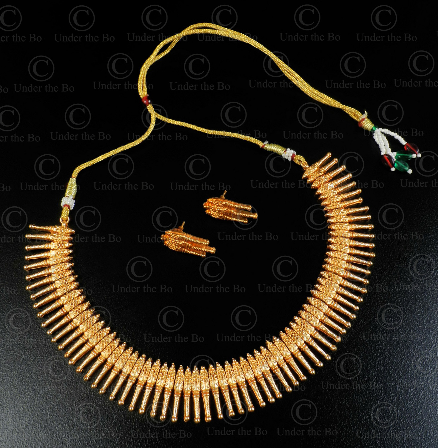Spectacular necklace, with slider lock, made of a cast metal that imitate gold. It comes with a matching pair of earrings.