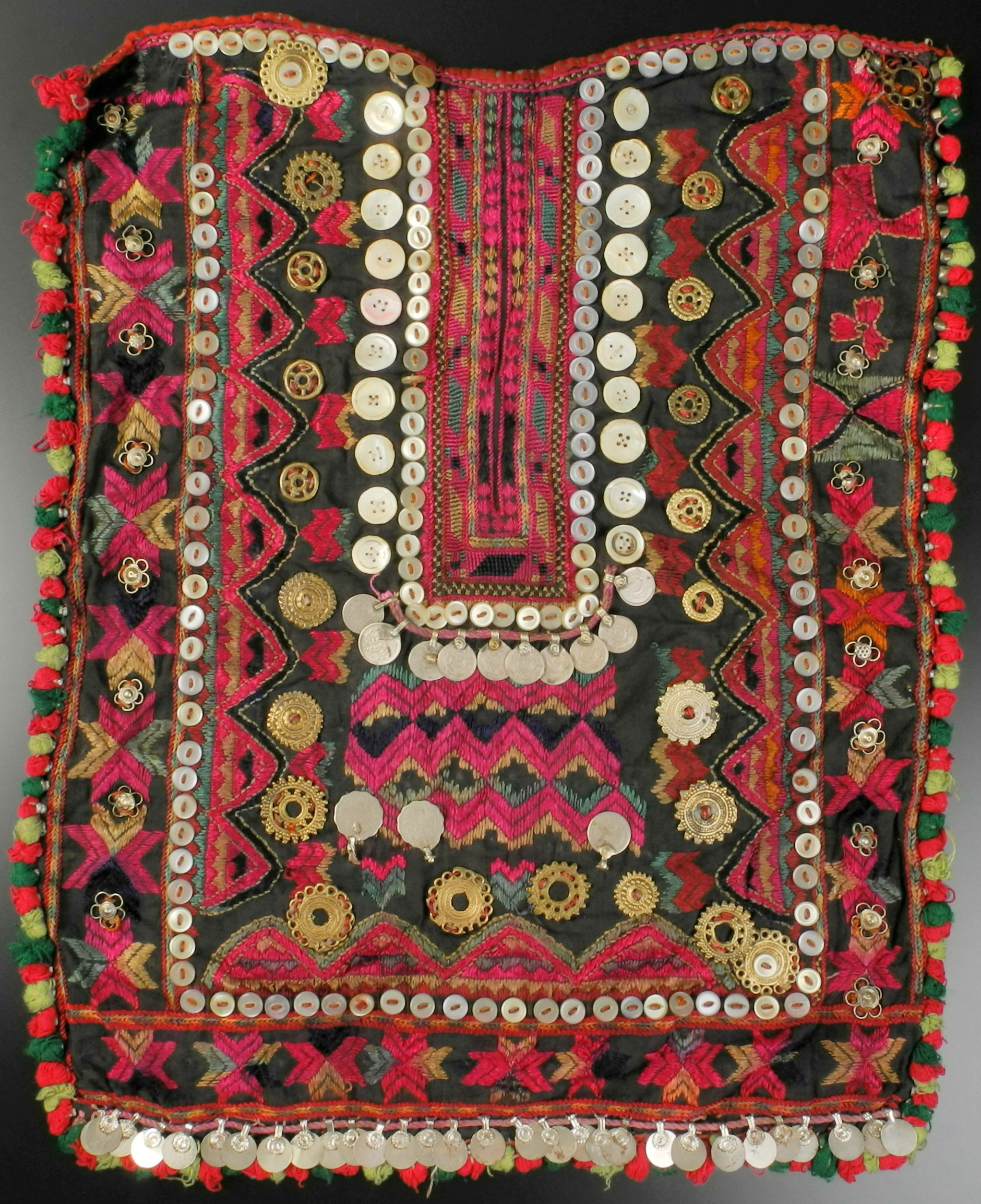 Mother-of-pearl buttons, bronze and nickel ornaments.