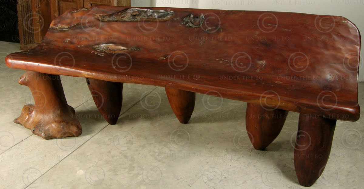 Rustic bench FV52. Country style. Oakwood burl top underthebo November 26, 2016 Rustic bench FV52. Country style. Solid jack wood. Manufactured at Under the Bo workshop. 201 x 48-79 x 57 cm.